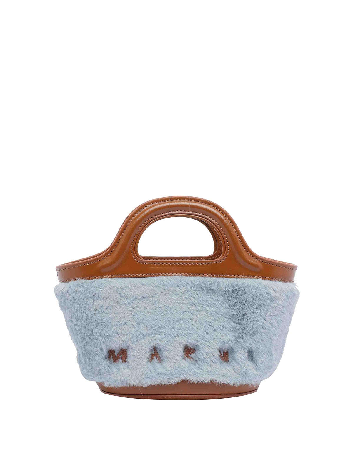 Sac à main Marni Tropicalia bleu clair en coulisse, poignées à fente, bandoulière adaptable et amovible, logo frontal