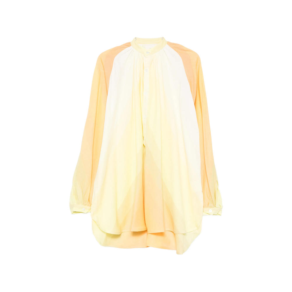 yellow/multicolour cotton long sleeves button fastening stand collar stripe pattern layered