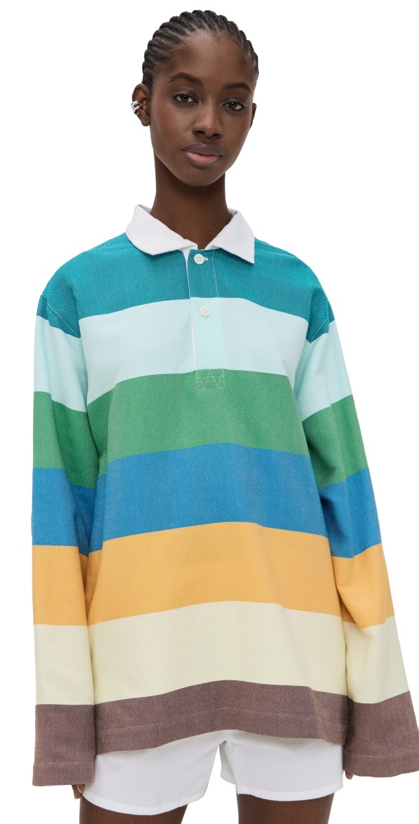Fabric: Mid-weight, non-stretch weave. Stripe pattern. Collared neck. Long sleeves. Partial button placket. Shell: 85% cotton/15% polyester. Dry clean. Imported, Morocco. Measurements: Measurements from size S Length: 31in / 79.0cm, from shoulder