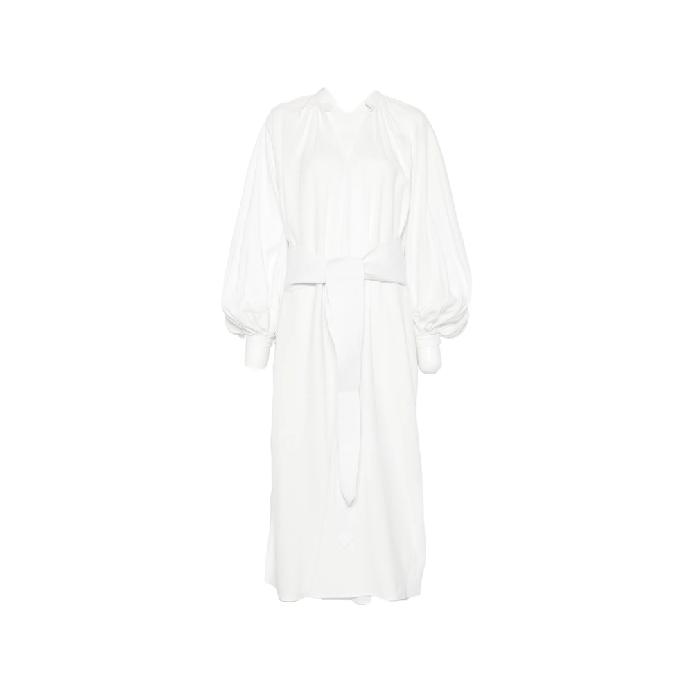 white tie belt V-neck long sleeves