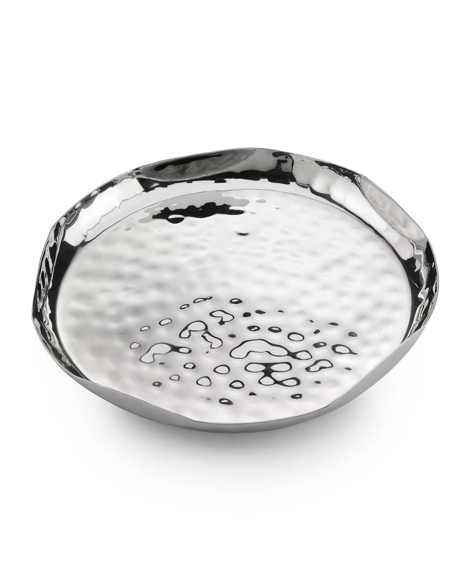 With an organic flair, our Blossom Round Tray with high sides offers versatile solutions for home entertaining. It is the perfect serveware for today's easycare lifestyle trend. Appetizers, snacks, salads or desserts-the Blossom Tray is always ready to serve! Handmade, environmentally conscious, and sustainable. Made of stainless steel. Organic metal design. No polish; food safe. Approx. 14"Dia. x 1"T. Dishwasher safe. Imported.