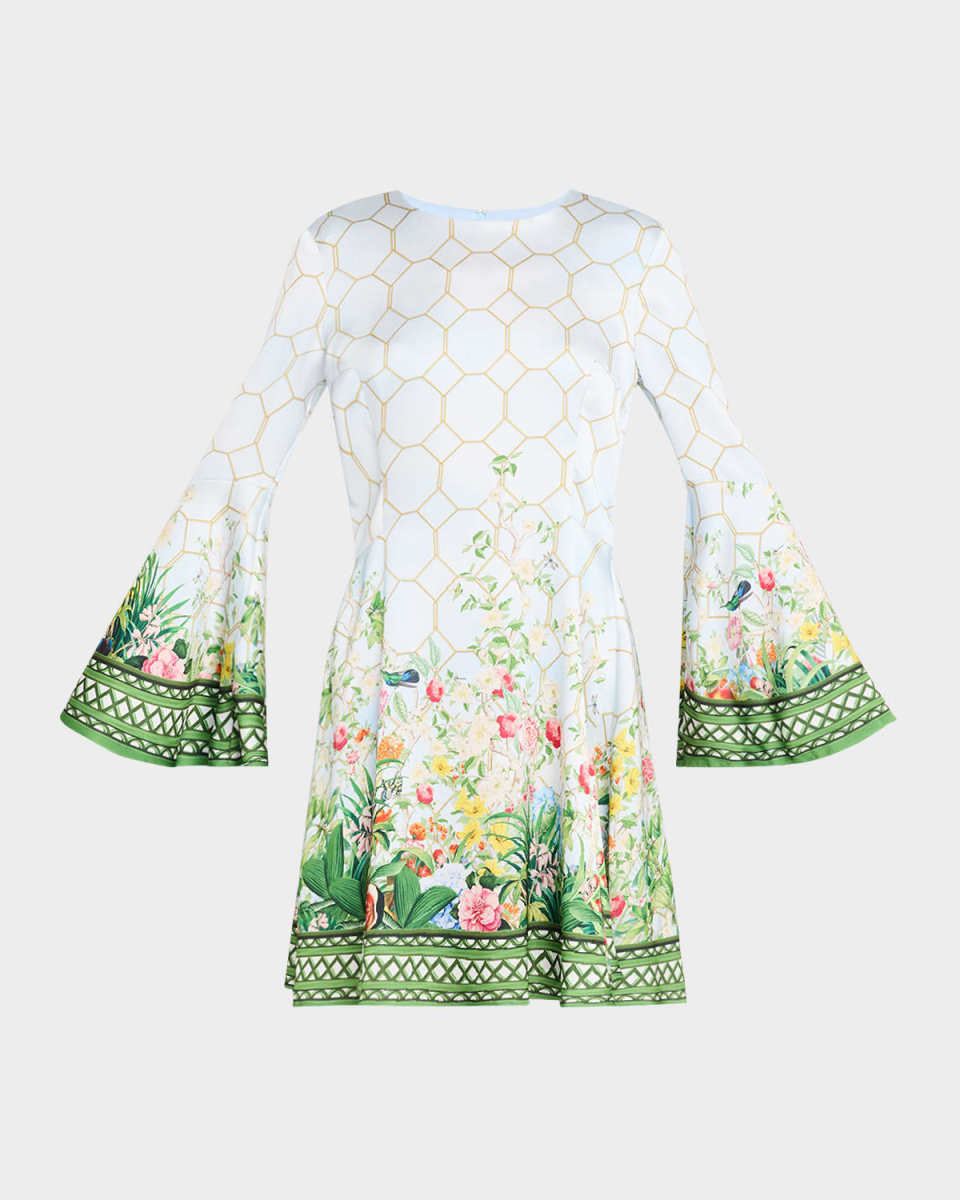 Beam Garden-Print Flare-Sleeve Dress