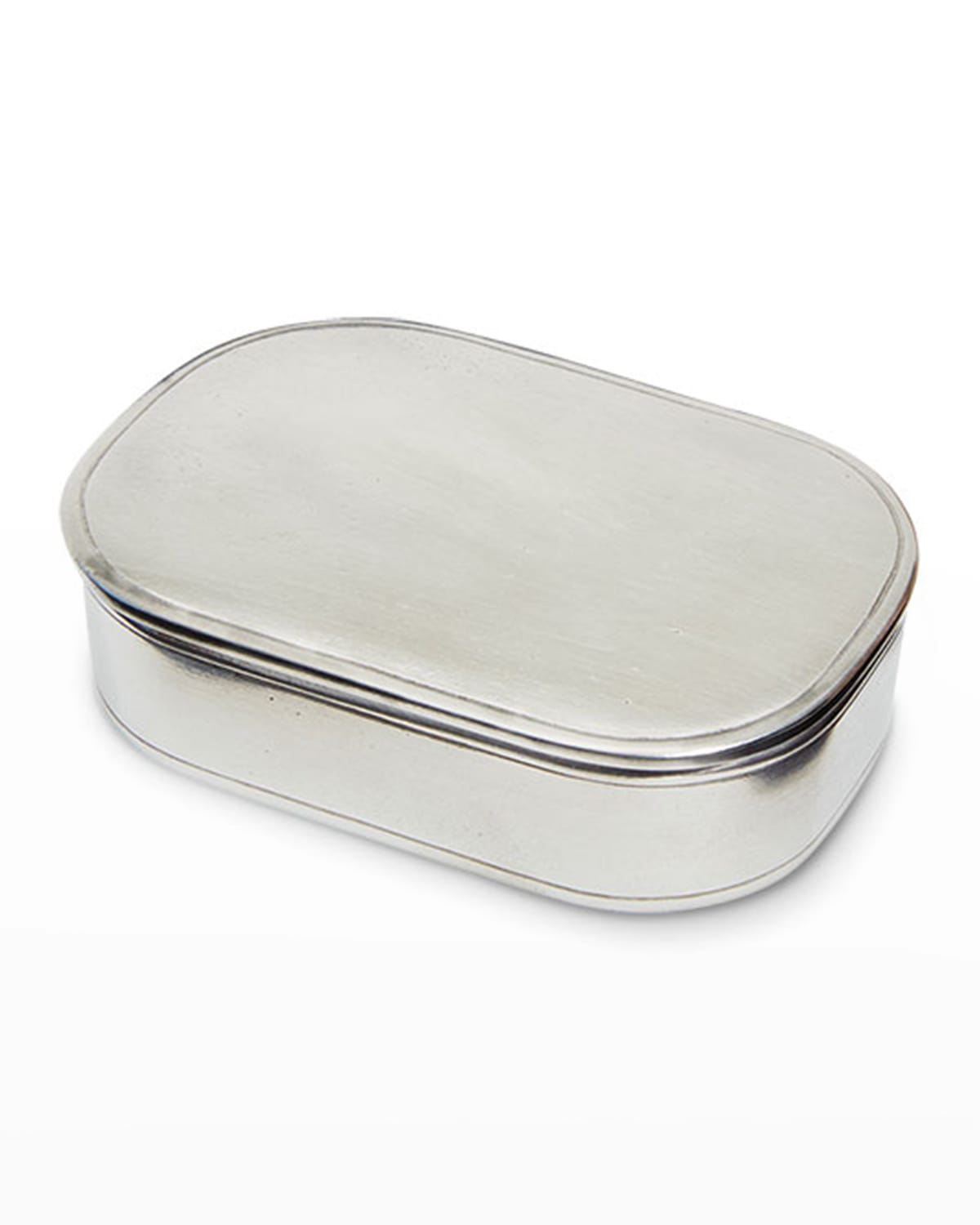 Box made of hand cast Italian pewter. Approx. 4"L x 2.7"W x 1"T. Made in Italy.