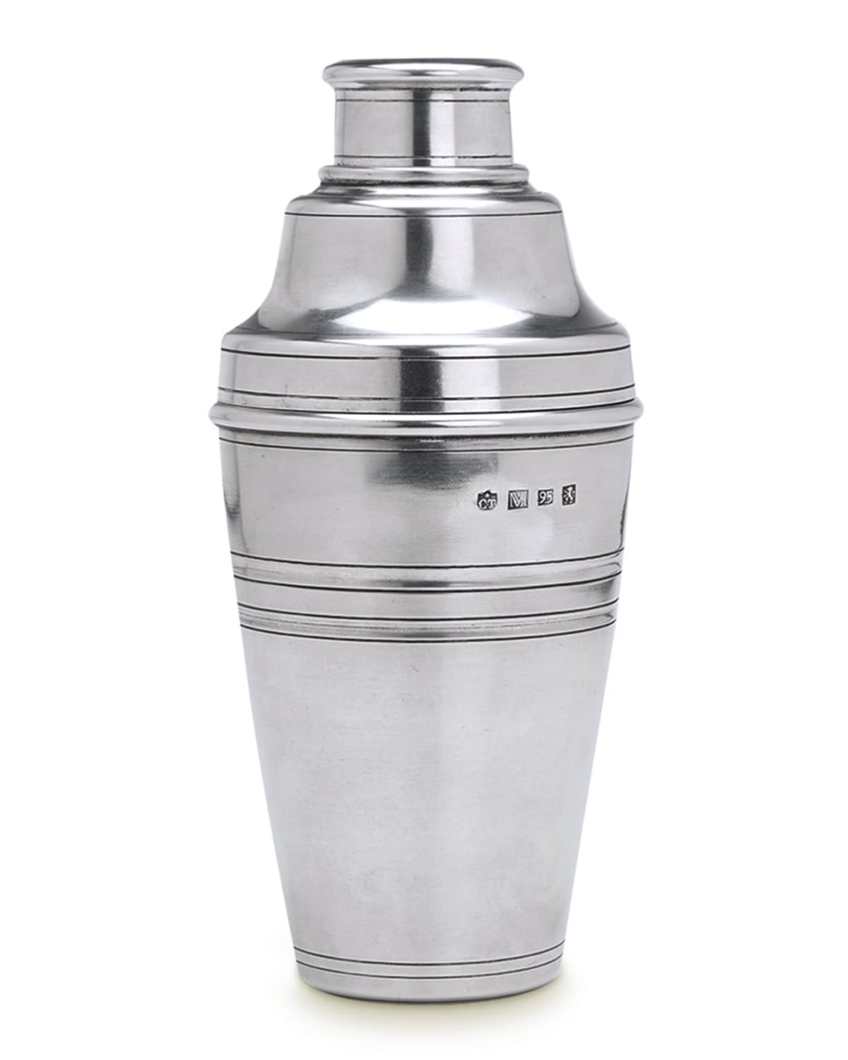 Cocktail shaker made of pewter. Pewter is handmade by artisans in Northern Italy. Leadfree and safe for everyday use. 4"Dia. x 8.3"T. Holds up to 20 oz. Hand wash. Made in Italy.