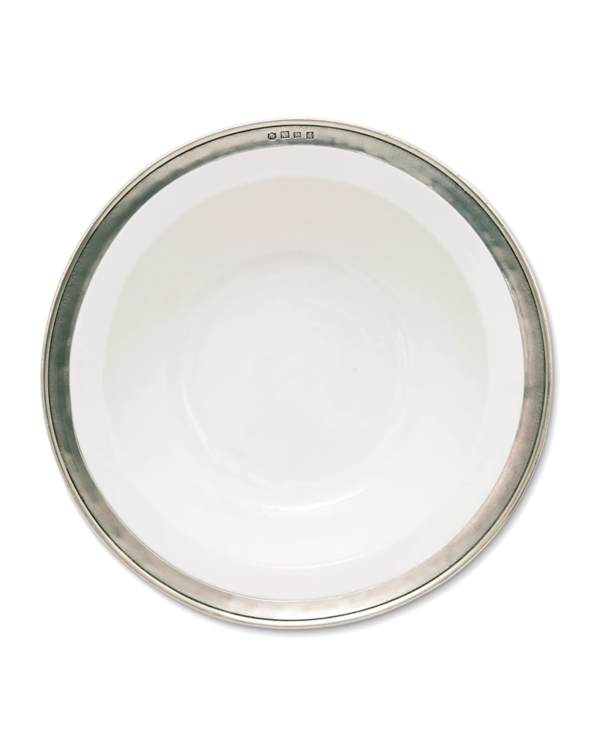 Handcrafted serving bowl. Ceramic and pewter. Approx. 11.8"Dia. Hand wash and dry. Made in Italy.