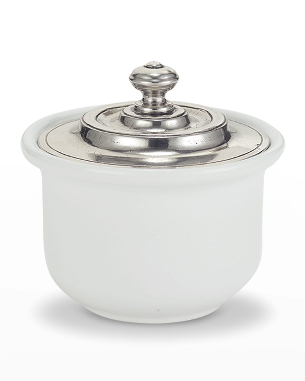 Handcrafted sugar bowl. Pewter and ceramic. Handmade in Italy.