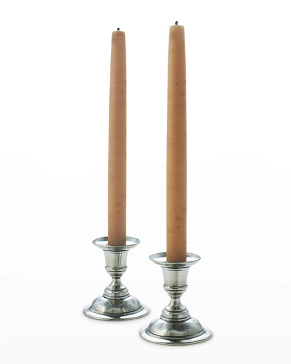 Handcrafted candlestick holder. Set of two. Pewter. Handmade in Italy.