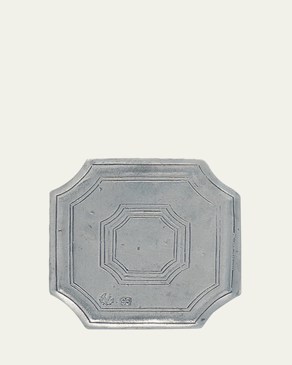 Handcrafted octagonal coaster. Pewter. Handmade in Italy.