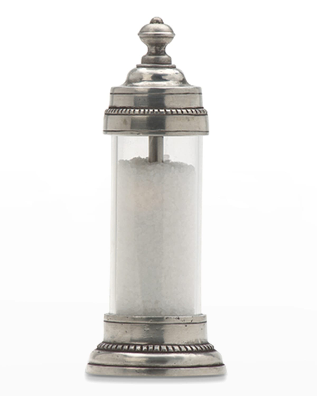 Handcrafted salt mill. Pewter and glass. Handmade in Italy.