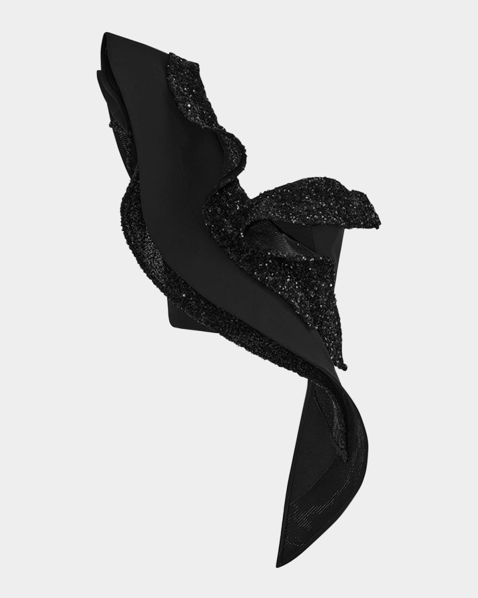 Maticevski "Bamboo" bustier top featuring sequin embellishment and a sculpted cascading ruffle Oneshoulder neckline Sleeveless Fitted Cropped length Side zip Linen/cotton/nylon/polyamide Dry clean Made in Australia