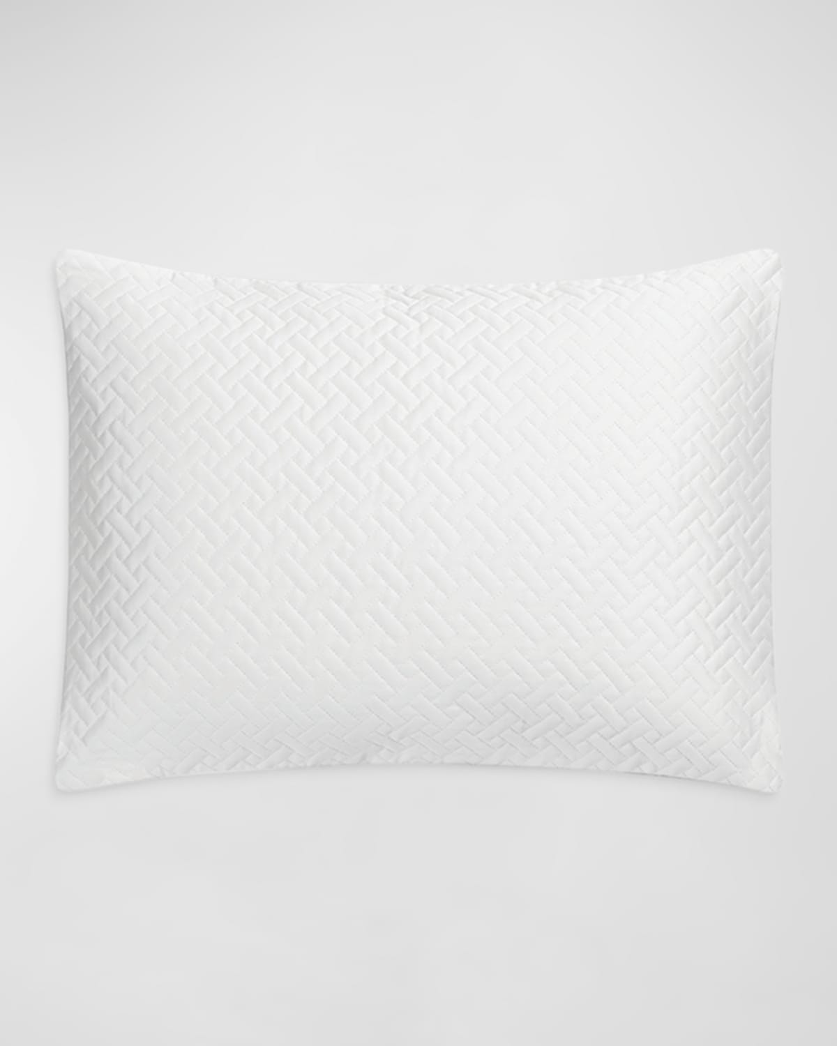 Basketweave features a timeless geometric that elevates any bed. Crafted from Matouk's luxurious Nocturne sateen, Basketweave is available in a variety of luscious colors. 600 thread count Egyptian cotton Knife edge finish Approx. 12" x 16" Item Weight (Lbs.): 1.0 Machine wash Made in USA from imported materials