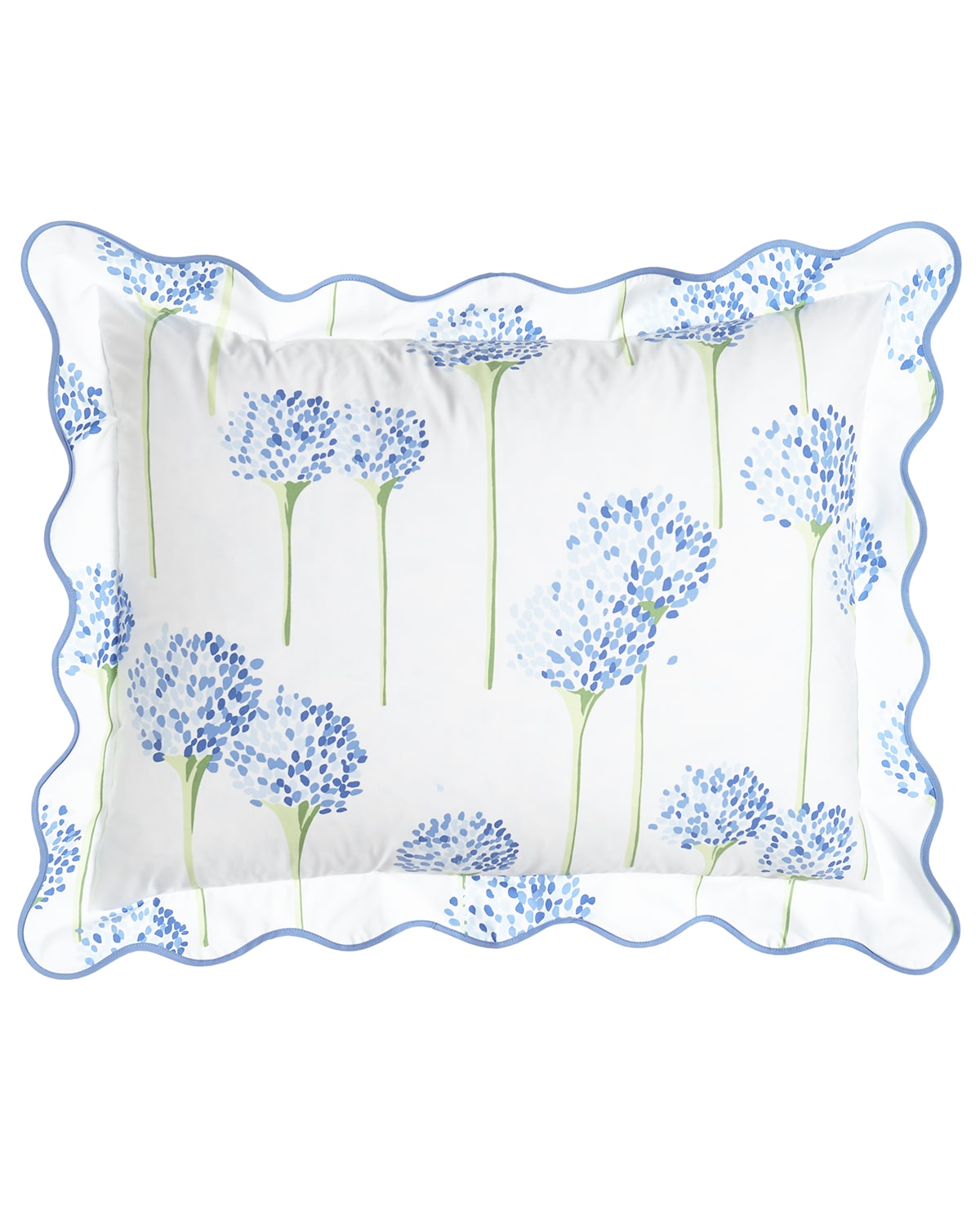 500threadcount Egyptiancotton percale sham. Approx. 3" flange Approx. 21" x 36". Machine wash. Made in the USA of fabric woven and printed in Italy.