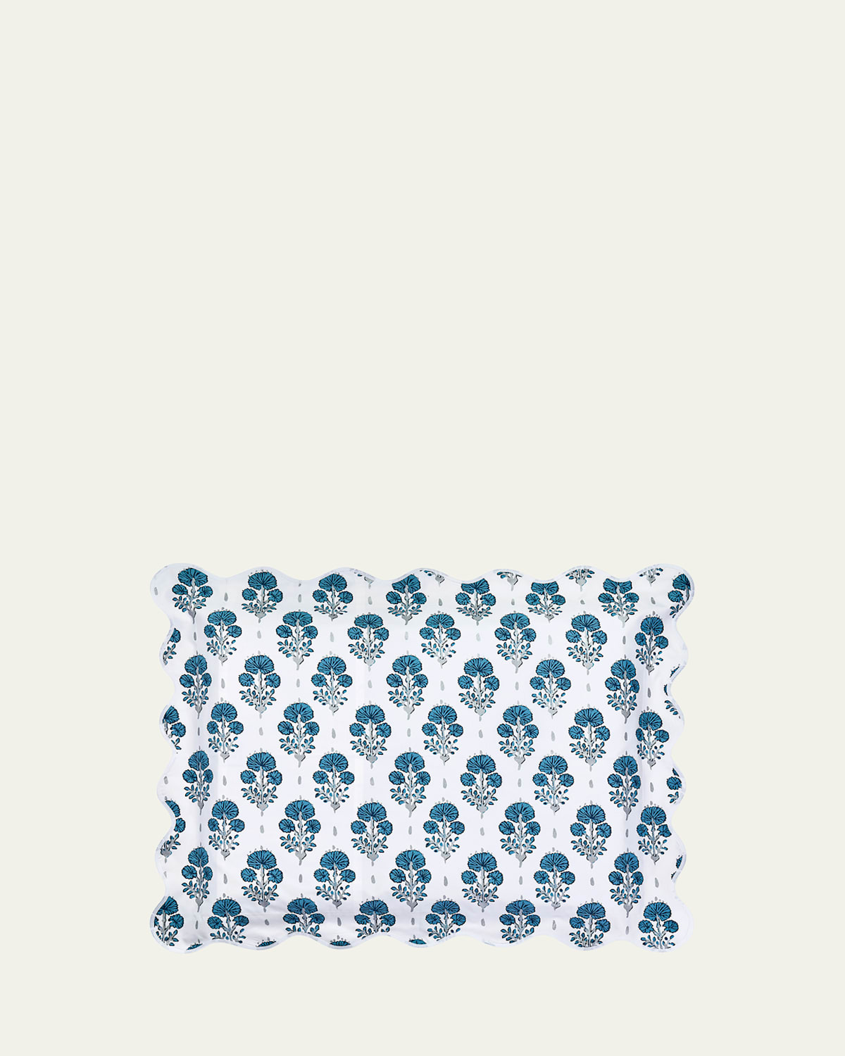 Floral sham featuring 3" self flange with scalloped edge. Egyptian cotton. Machine wash. Approx. 26" x 20". Made in the USA of Italian materials.
