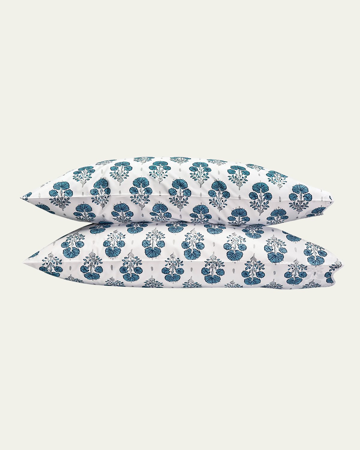 Set of two floral pillowcases. 500699 threadcount Egyptian cotton. Machine wash. 21" x 40" each. Made in the USA of Italian materials.