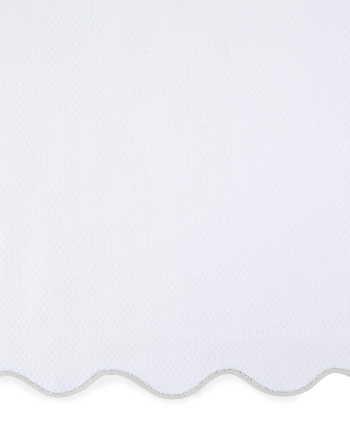 White pique coverlet finished with scalloped trim. Cotton/polyester. 72" x 92". Machine wash. Made in the USA of fabric from Portugal.