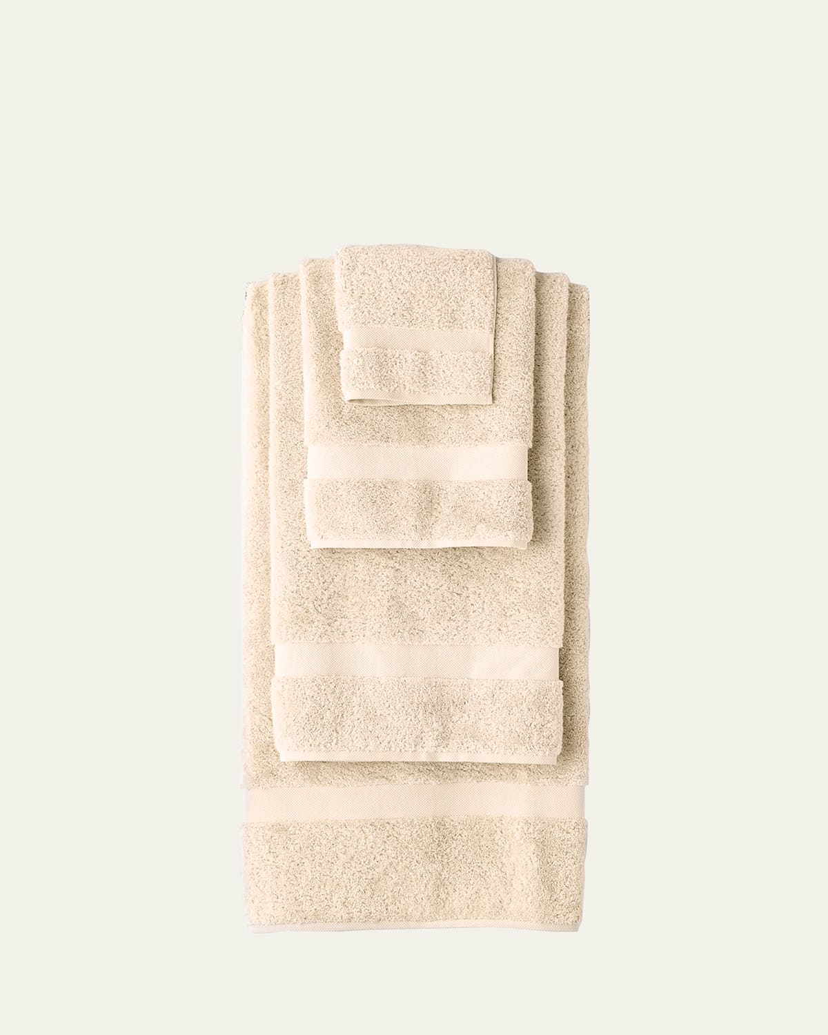 Thick and soft, 100% cotton with a decorative dobby border. 700 GSM luxury weight. 30" x 56". Machine wash. Made in Portugal.