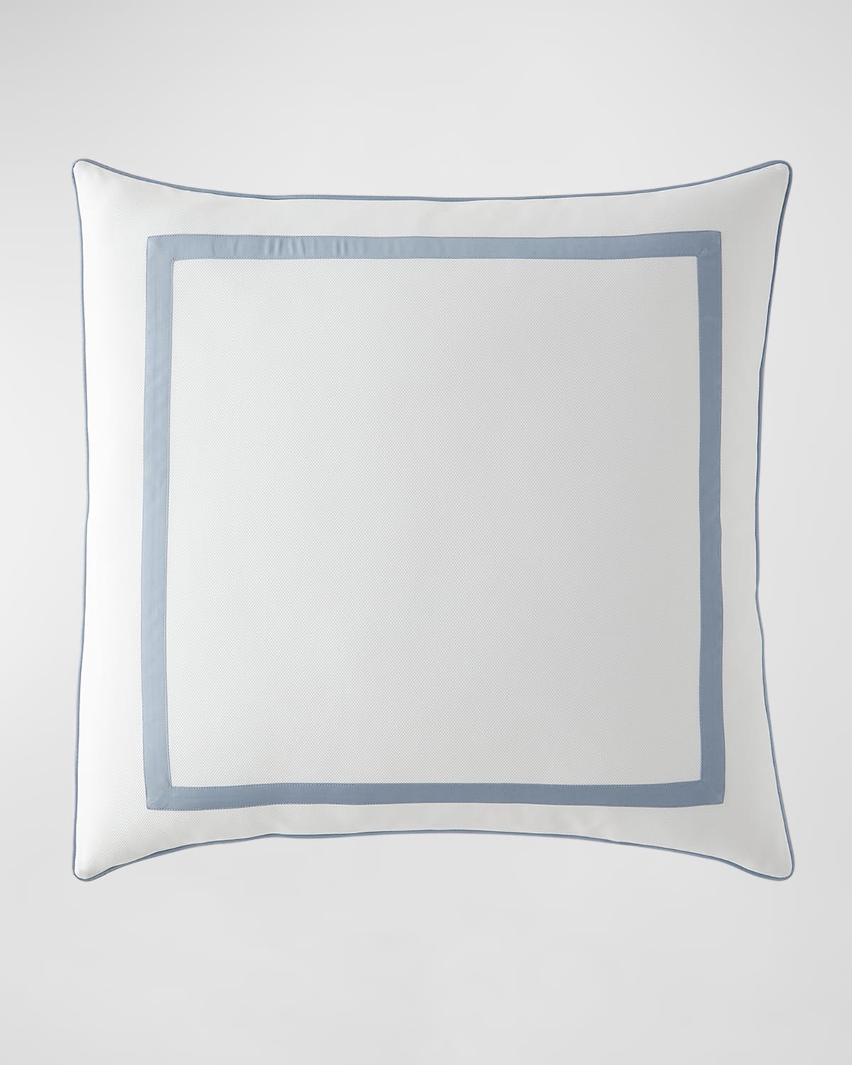 The bold lines of Louise sheeting are extended to this lightweight coverlet and shams, crafted in their newest Pique. A super soft triangular weave accented with sateen appliqué and matching corded edge. Crafted of cotton Approx. 27"Sq. Sold individually Machine wash warm, tumble dry low heat Imported