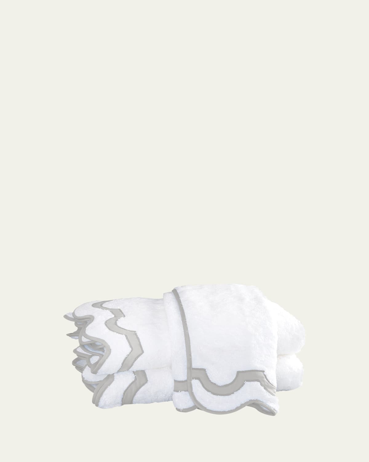 A chic shop awning in Palm Beach inspired the motif that unites the Mirasol Collections. For the bath, the border is a stunning Nocturne sateen appliqué on terry towels with scalloped piping to finish. Crafted of Cairo longstaple cotton; 625 gsm Approx. 30" x 60" Item Weight (Lbs.): 1.7 Machine wash warm Imported
