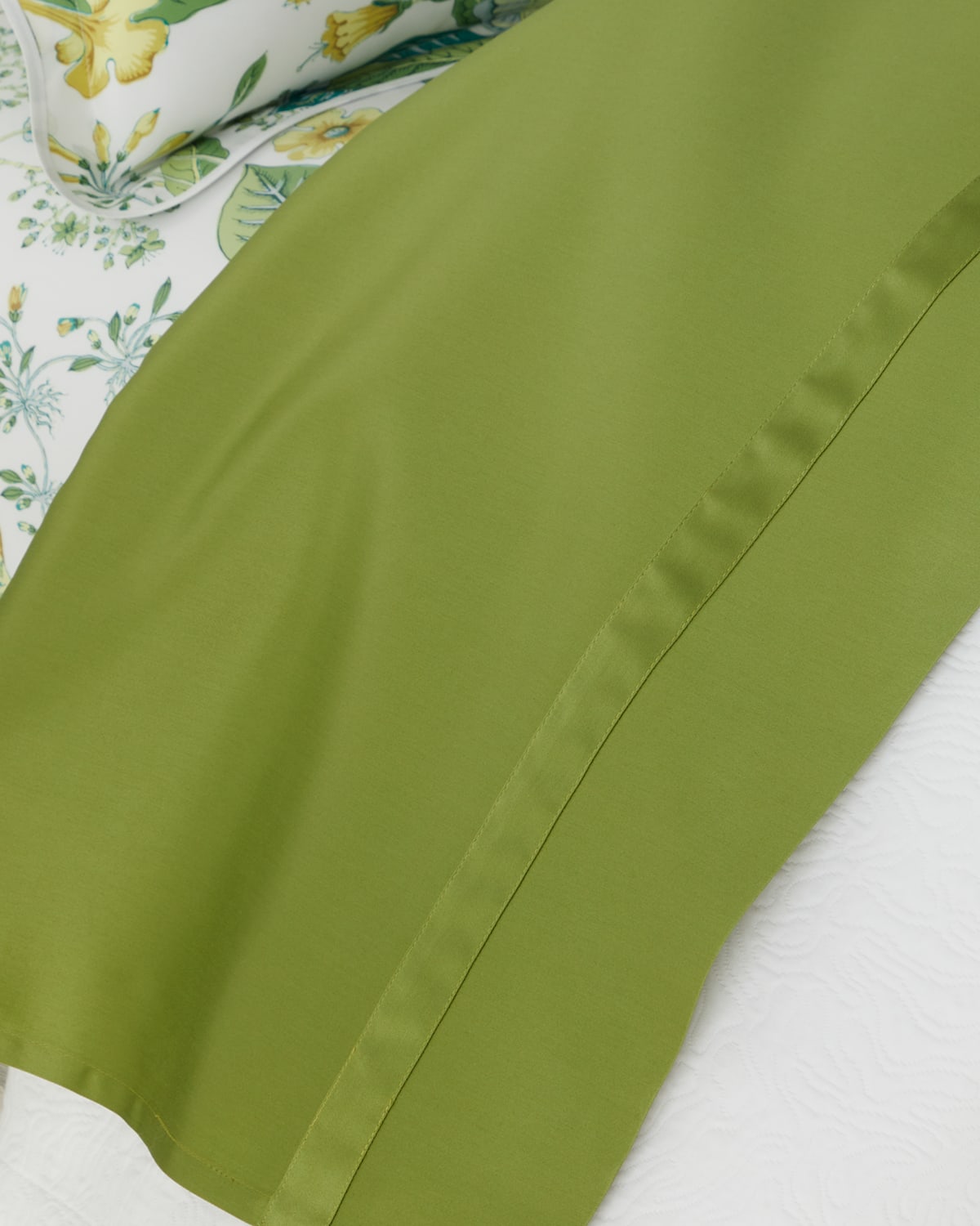 Exuding unrivaled charisma, our luminous sateen from Italy is a classic look in a collection of opulent colors finished with a 1" selftoned tape detail 600 thread count Egyptian cotton sateen Approx. 96" W x 112" L Machine wash, machine wash tumble dry Imported