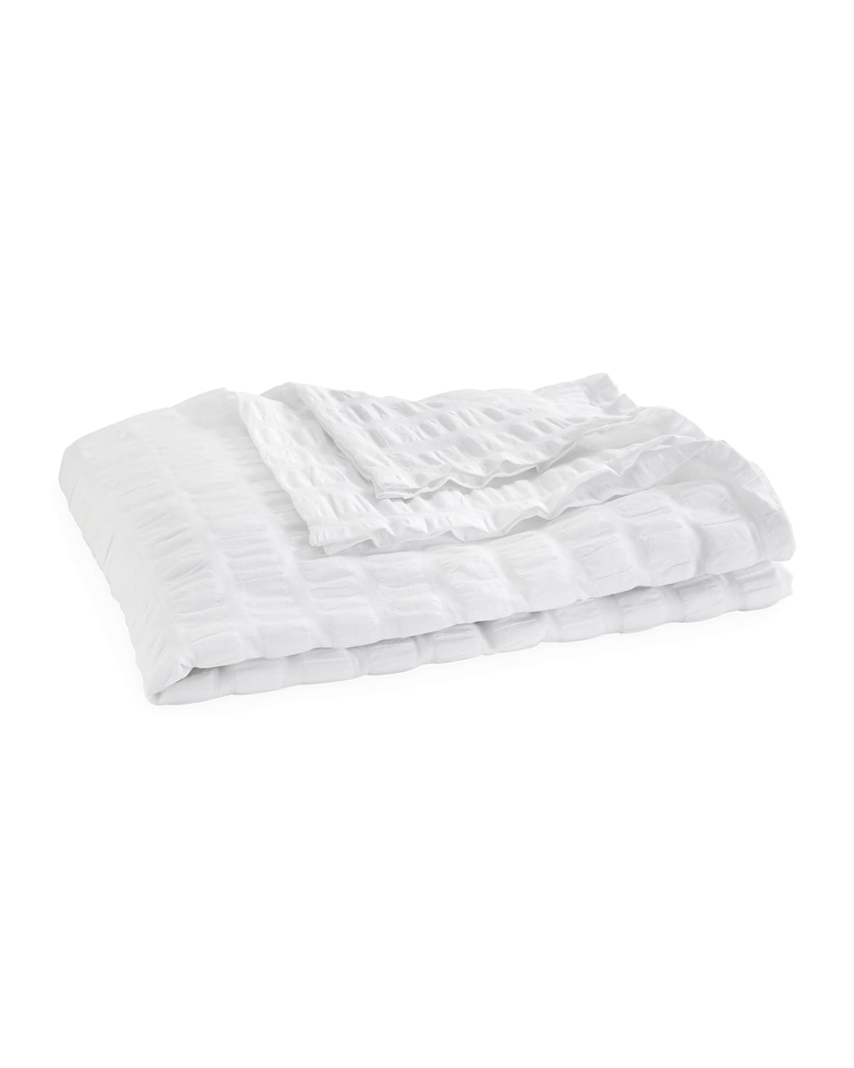 Coverlet of cotton seersucker. Machine wash. 72" x 92". Made in the USA of imported materials.