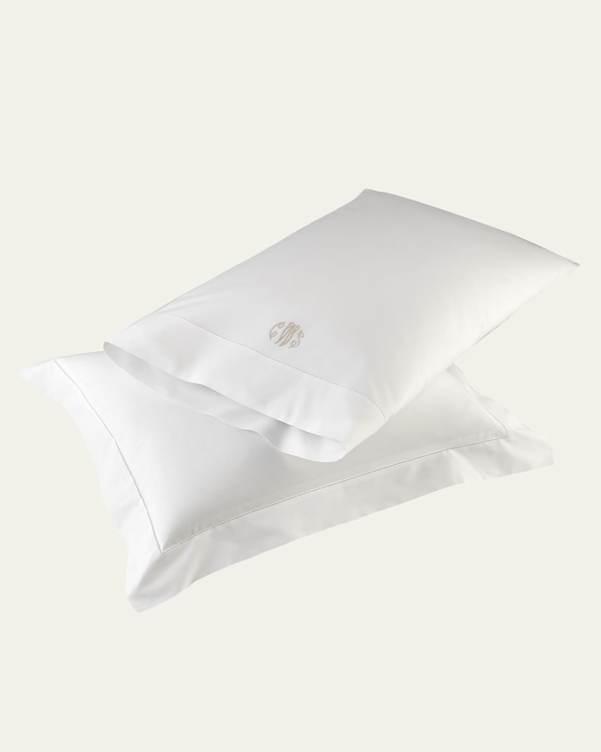 Pair of standard pillowcases, each 21" x 32". 200threadcount fabric is a 50/50 blend of Egyptian cotton and polyester. Hemstitch detail. Optional personalization: 1 or 3 initials or name (up to 11 characters/spaces). OEKOTEX Standard 100 certified Machine wash. Made in the USA of Italian fabric.