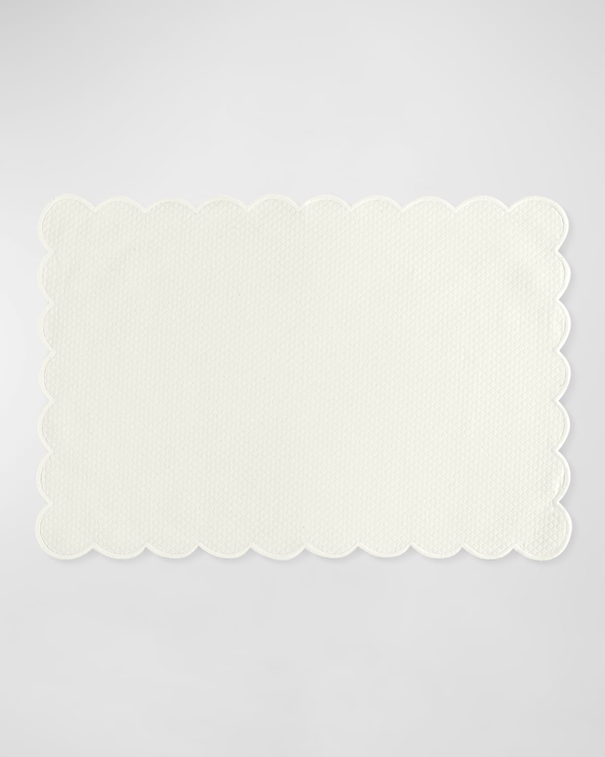 Set of four diamondpique placemats. Each, 19" x 13". Cotton/polyester. White embroidered scalloped edge. Machine wash. Made in the USA.