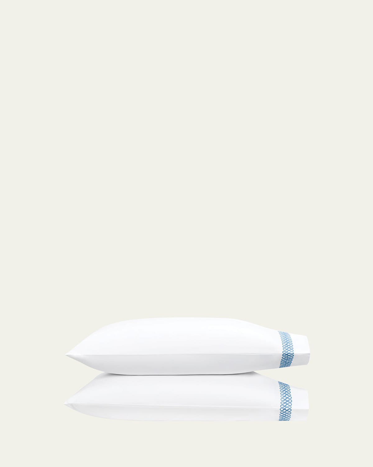 Embroidered on our crisp 520 thread count Ceylon percale, Astor Braid is a style with a quintessential appeal. The bold design from Schumacher's celebrated collection of tapes and trims is a timeless script, suited for pairing with an array of patterns Two heritage companies synonymous with beauty and quality come together in an exciting collaboration. The Matouk Schumacher collection combines Matouk's impeccably crafted linens with Schumacher's extraordinary prints, for beautiful bedding, table, bath, and beach styles that capture the very best of both brands Set of two pillowcases made of cotton percale Each approx. 21"L x 32"W Machine wash warm Imported
