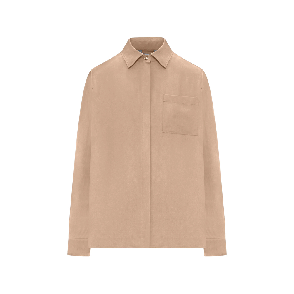 hazel brown chest patch pocket point collar button fastening long sleeves side slits