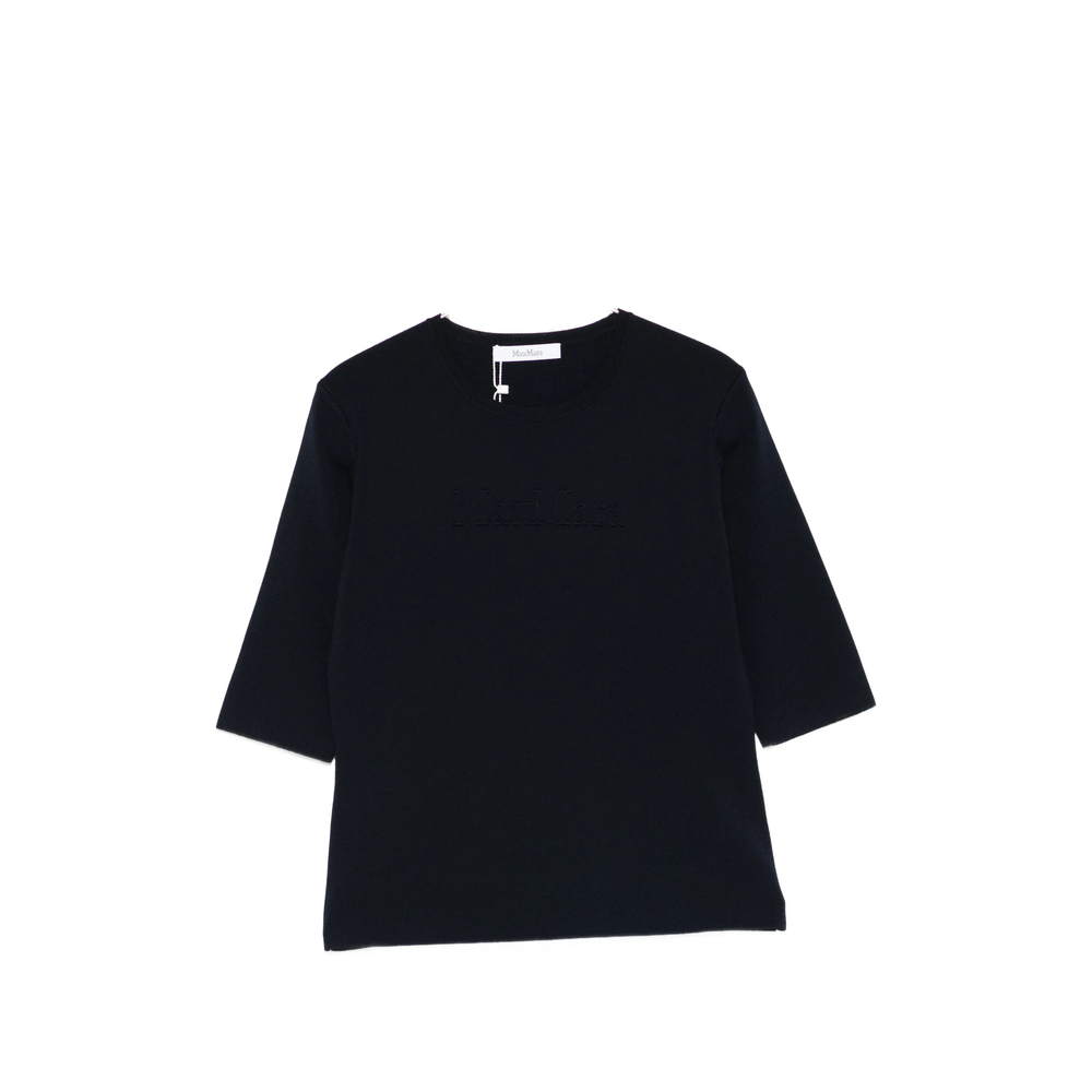 blue embossed detailing round neck short sleeves