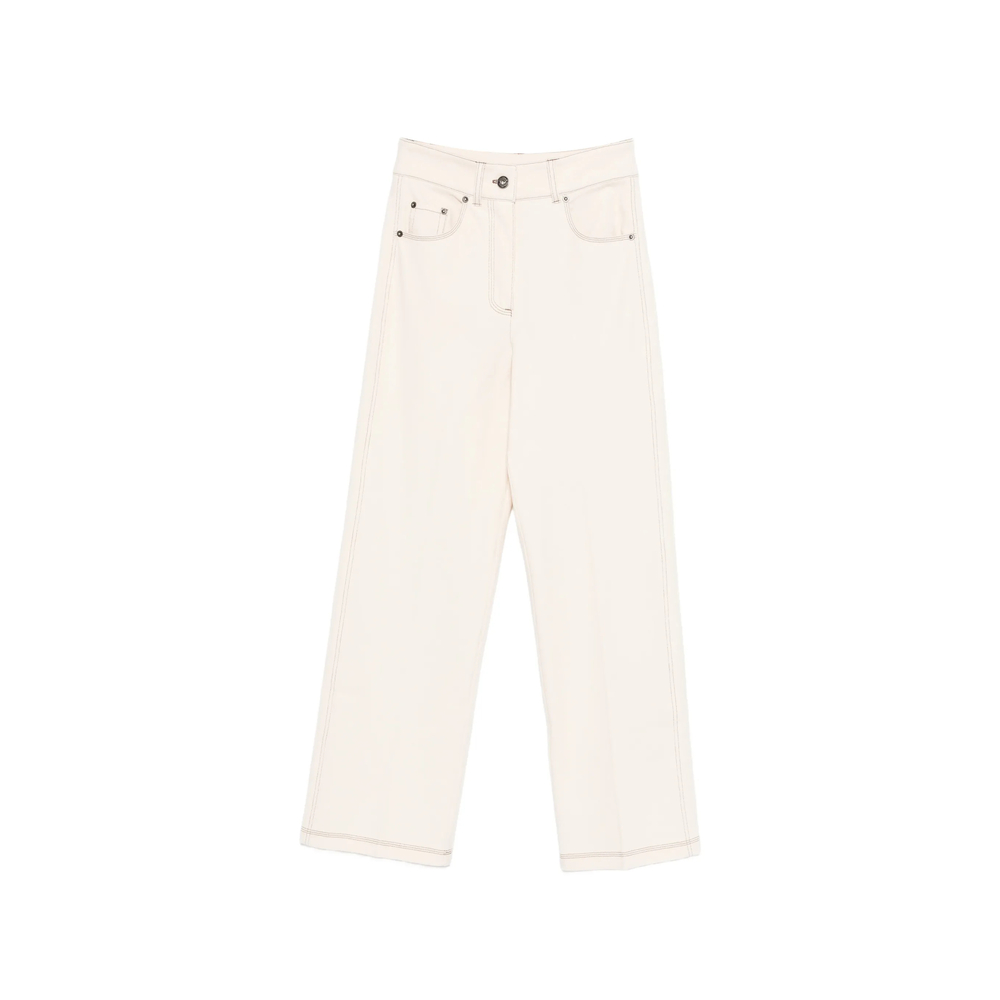 beige straight leg seam detail belt loops button fastening front pockets