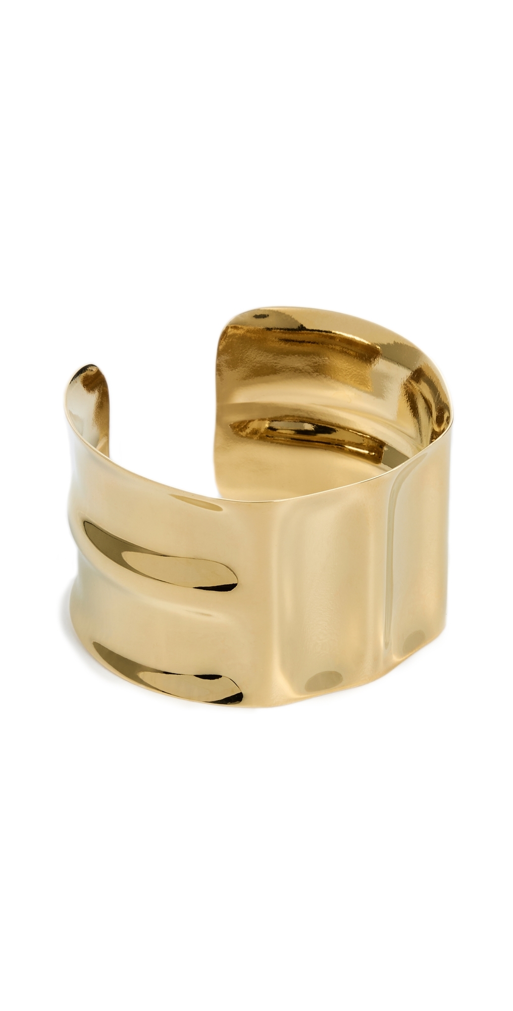 Hammered details. Polished finish. 24k gold plate. Cuff. Imported, Mexico. Measurements: Diameter: 2.5in / 6.5cm