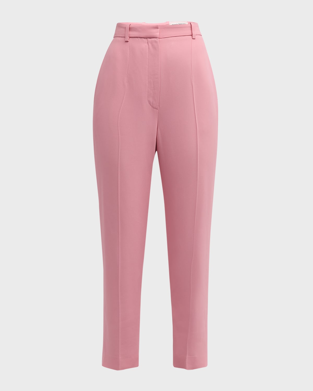 McQueen solid trousers High rise Side slip pockets; back welt pocket Slim cigarette legs Cropped fit Tab/zip fly; belt loops Viscose/acetate/cupro Made in Italy