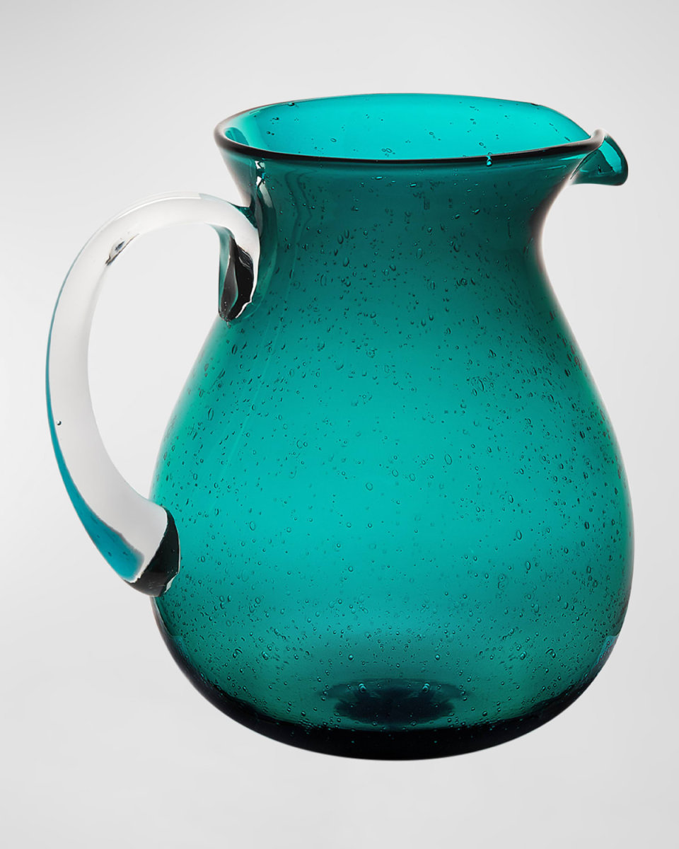 Perfect for bringing flavored water, juice, or a cocktail for your own personal happy hour at home, what characterizes the Memento Pitcher carafe is the large transparent handle to guarantee a solid and safe grip and a deep pour spout to reduce the amount of spills when serving beverages. Features Memento's signature bubbles, produced by special lathe processing and present in large quantities inside the glass Crafted of glass Approx. 8.3"T Capacity, 54 oz. each Item Weight (Lbs.): 2.0 Dishwasher safe Imported