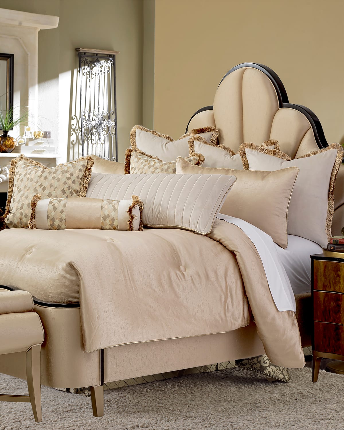 The Somerset Manor comforter set is ready to enhance any décor! The coordinating pillow shams and bolster sham are designed with an eye to detail that creates a dynamic complement to the main pattern. Three decorative pillows feature feather fill and removable covers for ultimate convenience. This set includes one comforter, two standard shams, two euro shams, one bolster, and three decorative pillows with feather fill Pillow sizes include (2) 18"Sq. and (1) 8" x 20" Hidden zip closures on all pillows Comforter, approx. 92" x 96" Standard shams, 20" x 26" Euro shams, 26"Sq. Item Weight (Lbs.): 29.0 Polyester Dry clean, spot clean 9piece set Imported
