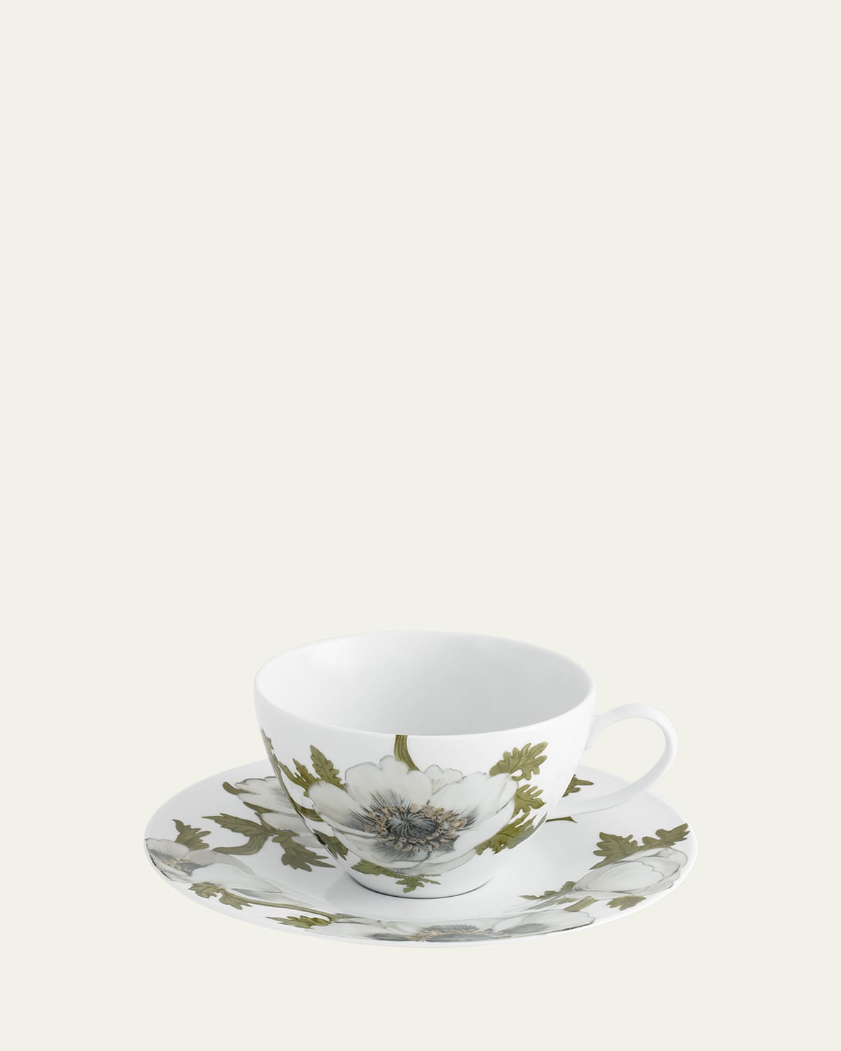 Cup and saucer set featuring a motif and anemones Crafted of porcelain Cup, approx. 3.9"Dia x 3.2"T Saucer. approx. 6.7"Dia Capacity, approx. 3.7 oz Imported