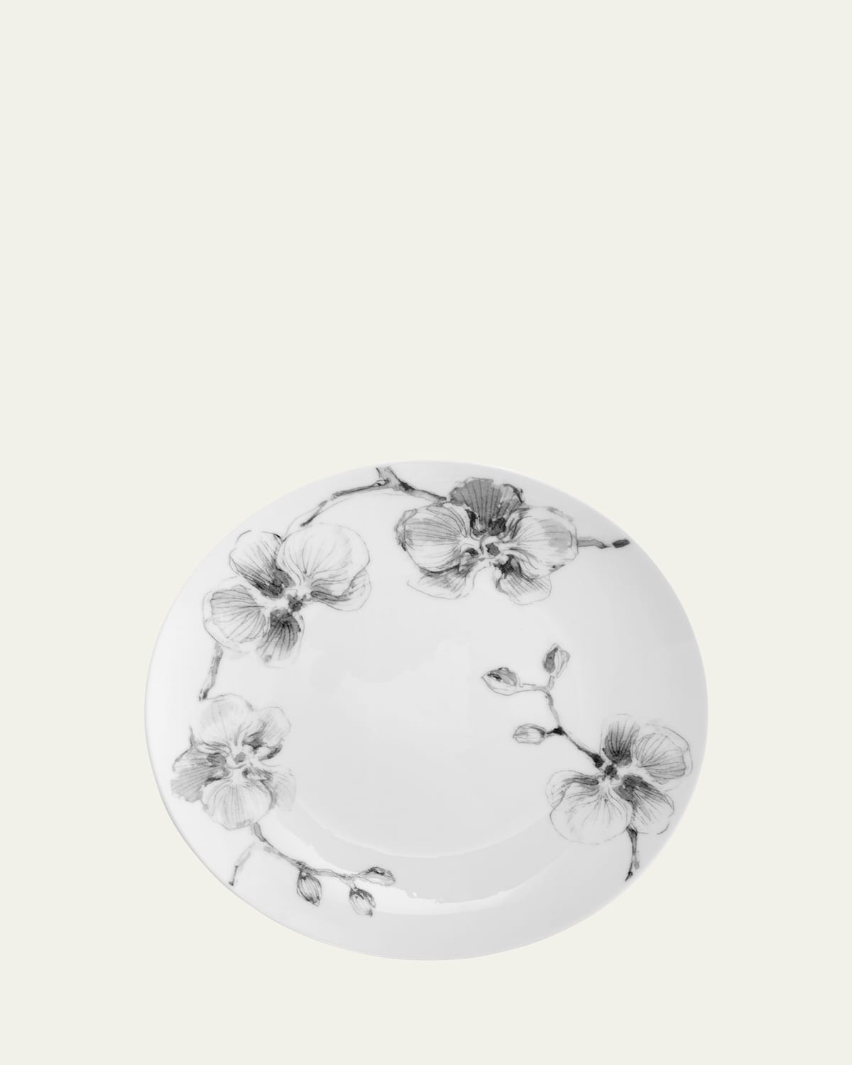 The Michael Aram Black Orchid Collection was inspired by the powerful sensuality of orchids and the rich ambiance of haute couture strikingly simple yet full of the most extreme detail Set of four tidbit plates, handcrafted of porcelain Approx. 5"L x 6"W x 6"T Dishwasher and microwave safe Imported