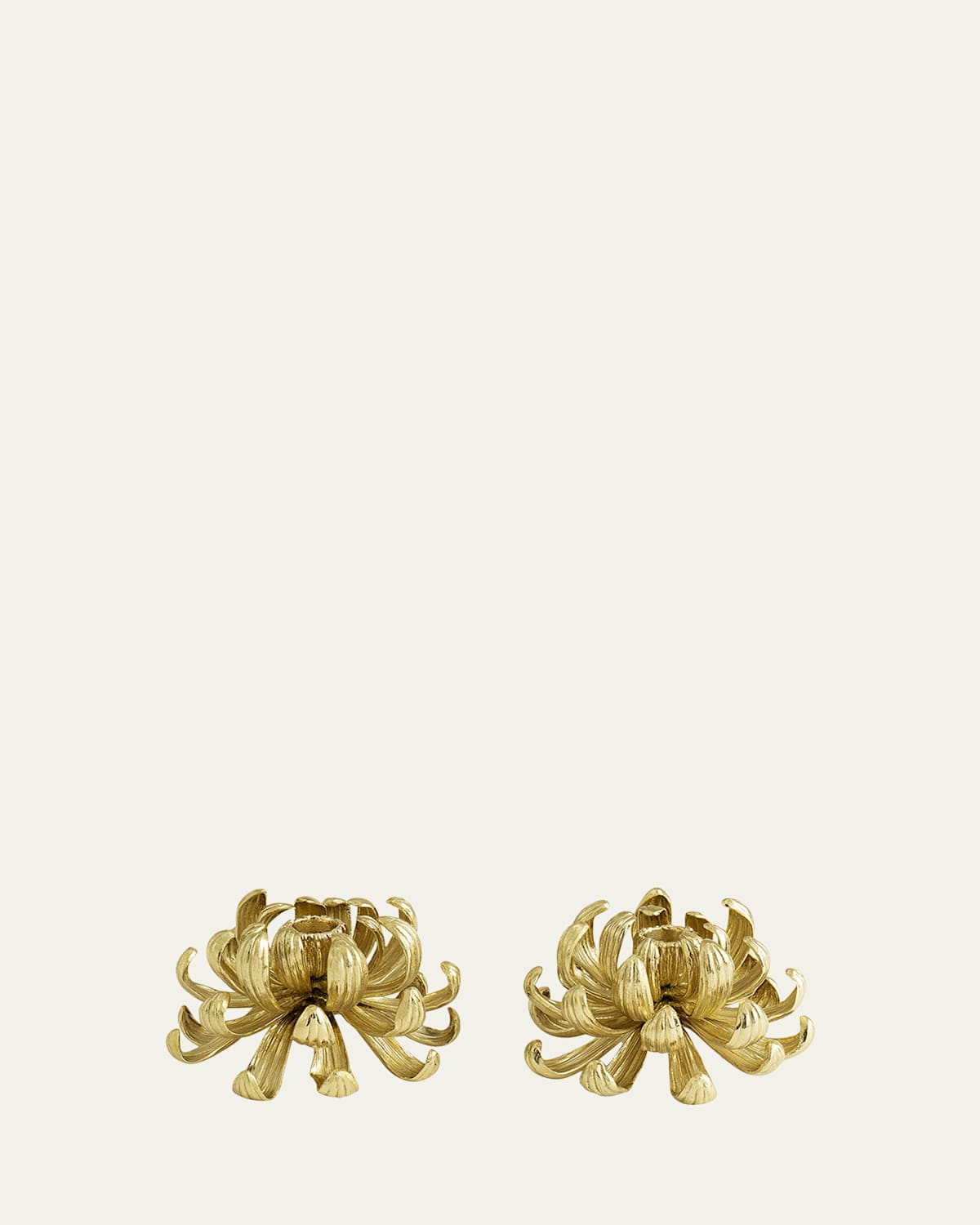 Candle holder crafted of brass with a golden finish Set of two Approx. 3"T x 5.5" Dia. Item Weight (Lbs.): 4.4 Hand wash with gentle detergent, dry immediately with soft cloth; avoid any detergent with lemon or other acidic agents Imported