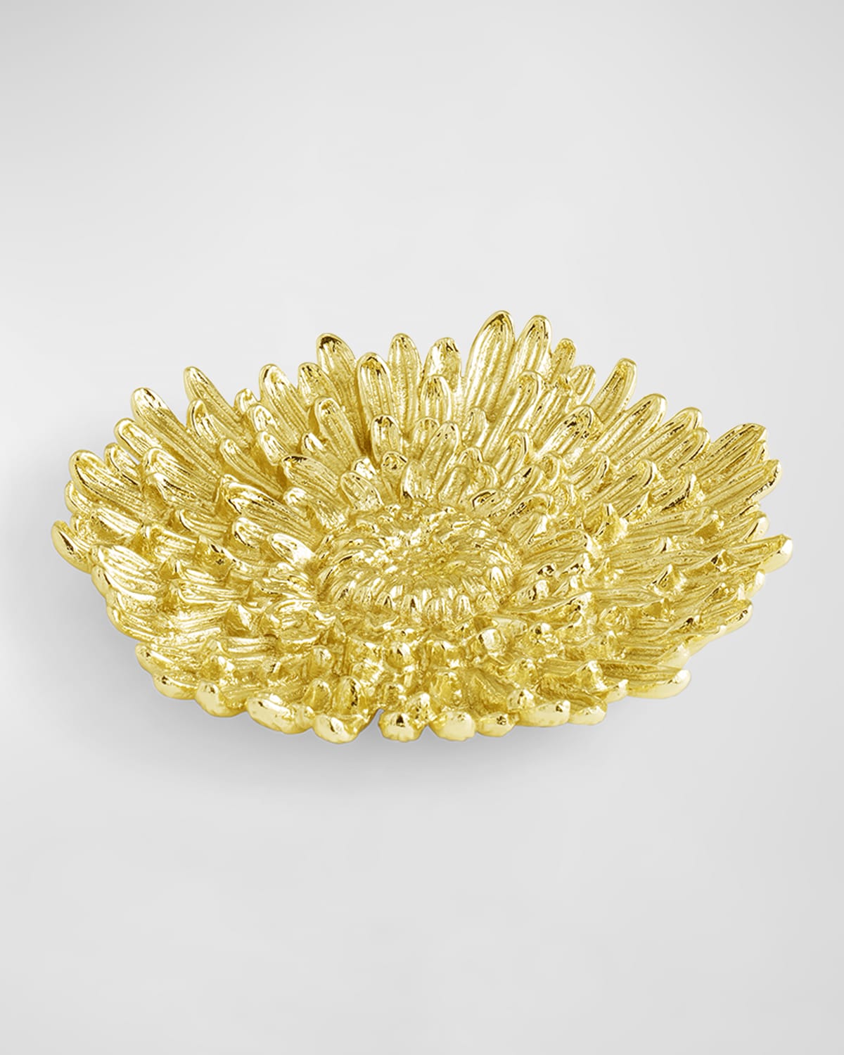 Catch all crafted of aluminum with a golden finish Approx. 6.5" Dia. x 1"T Item Weight (Lbs.): 1.2 Hand wash with gentle detergent, dry immediately with soft cloth; avoid any detergent with lemon or other acidic agents Imported