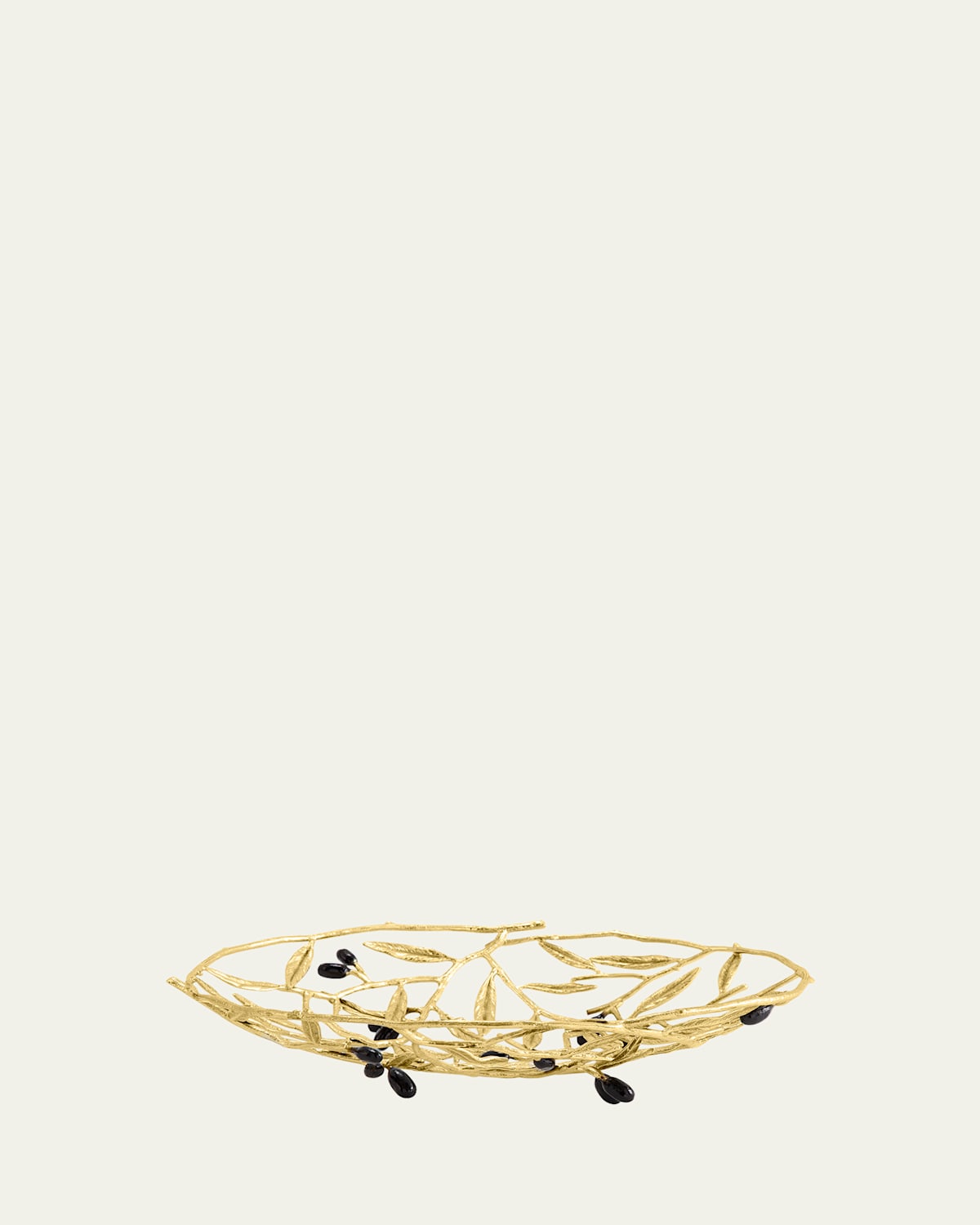 The Michael Aram Olive Branch Collection is one of the best known and most loved of Michael's motifs. The simple forms create objects that serve wonderfully as stunning individual gifts or an exuberant table setting that decorates an entire moment of your life Handcrafted of brass and enamel Approx. 11.5"L x 8.75"W x 2.5"T Hand wash Imported