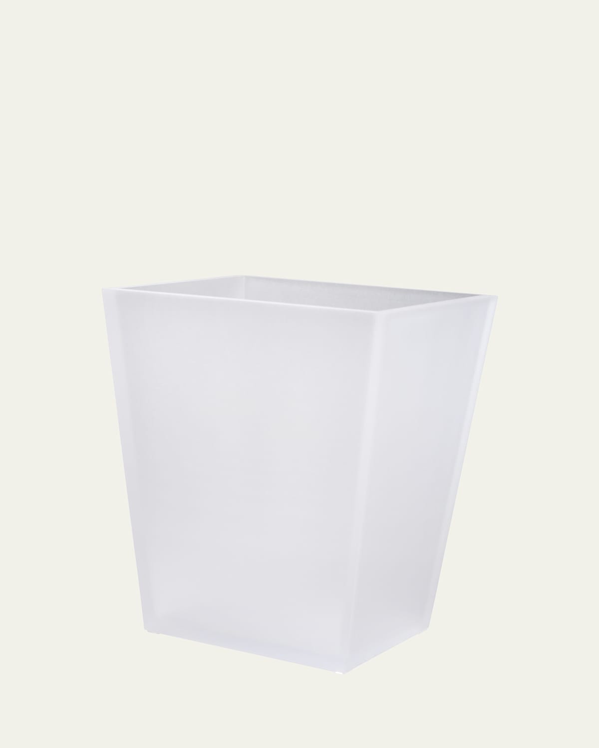 Wastebasket and liner made of frosted Lucite Approx. 7.5"L x 9"W x 11.3"T Wipe clean Imported