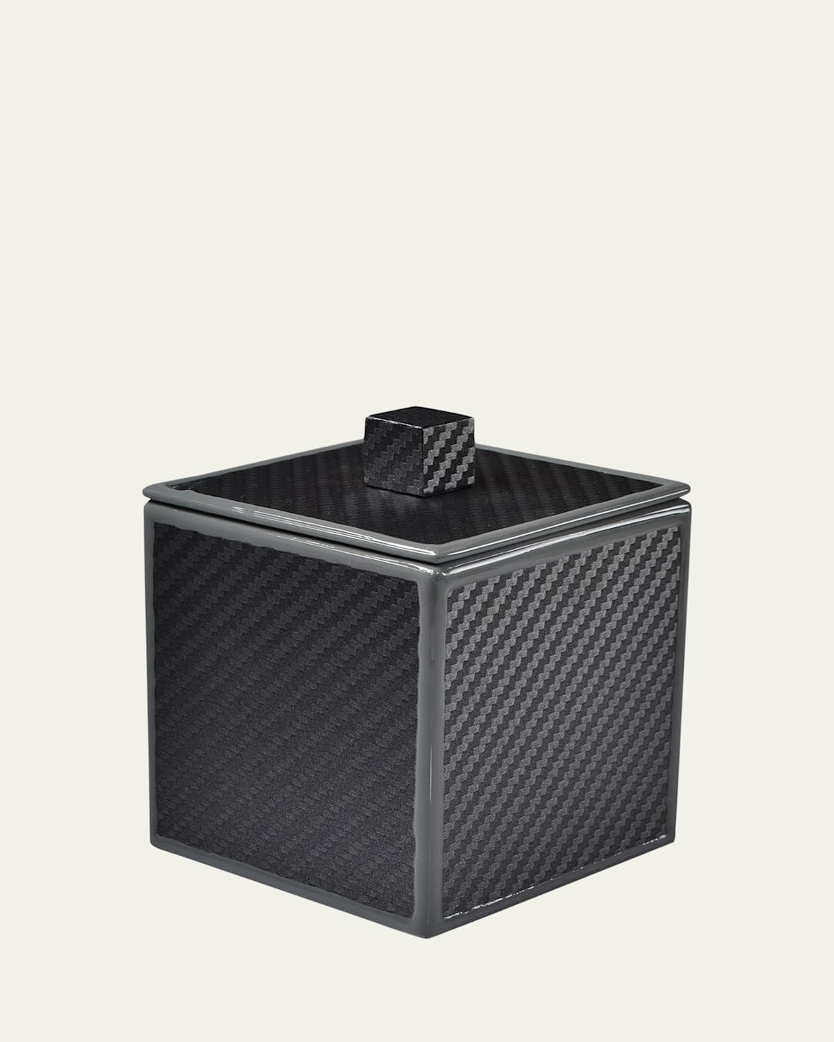 Container and lid with enamel trim. Carbon fiber and wood. 3.75"Sq. x 5"T. Made in the USA.