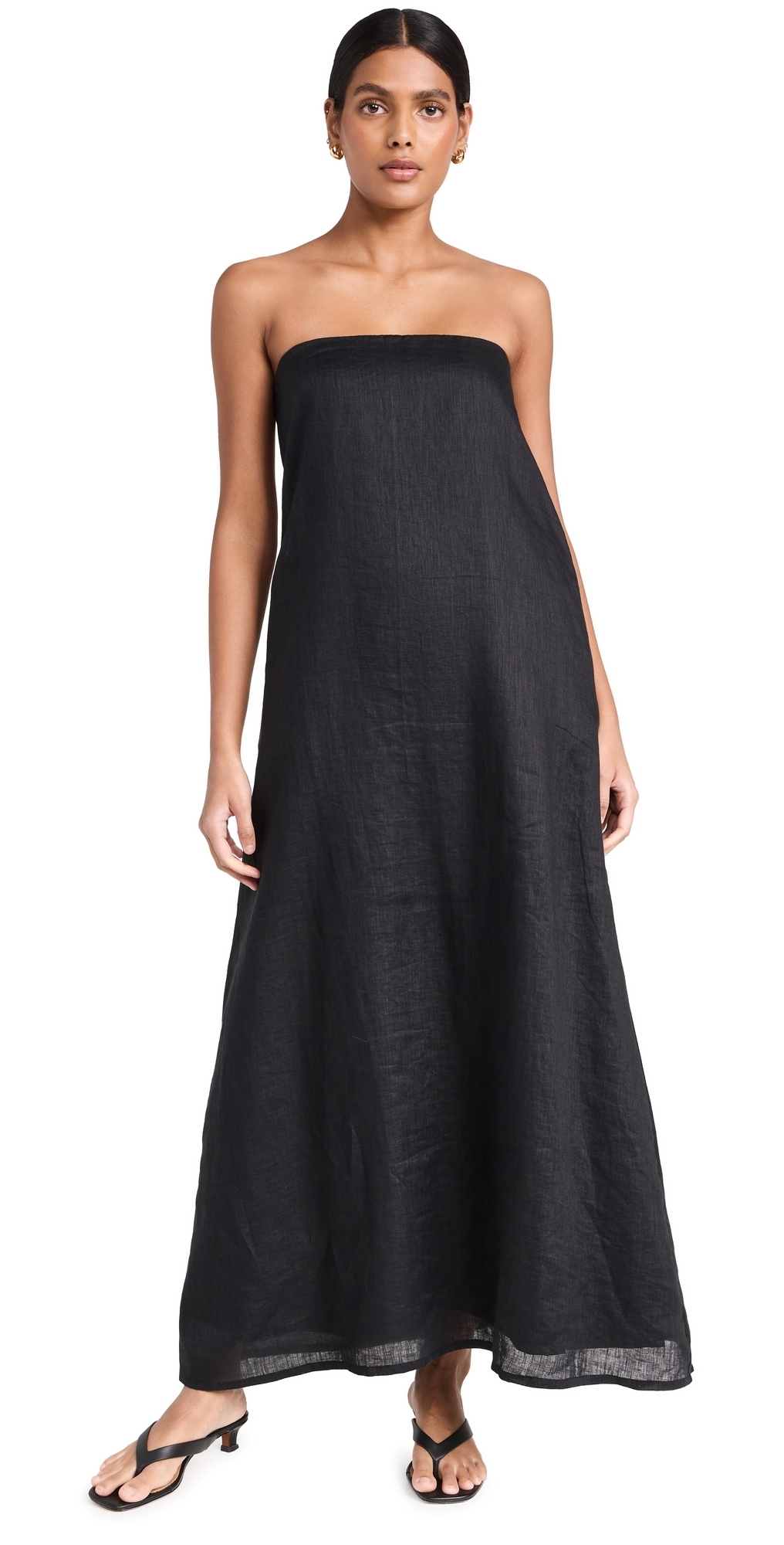 Fabric: Lightweight, non-stretch slubbed weave. Strapless. Hidden zip at back. On-seam hip pockets. Shell: 100% linen. Lined. Lining: 100% cotton. Wash cold. Imported, Indonesia. Measurements: Measurements from size 1 Length: 46.5in / 118.0cm, from center back