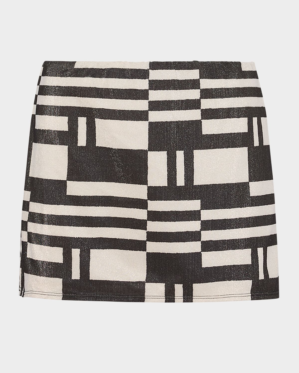 Milly swim skirt in a metallic geometric design Highrise waistband Full seat coverage Nylon/polyamide/elastane/metallic fibers Hand wash Imported