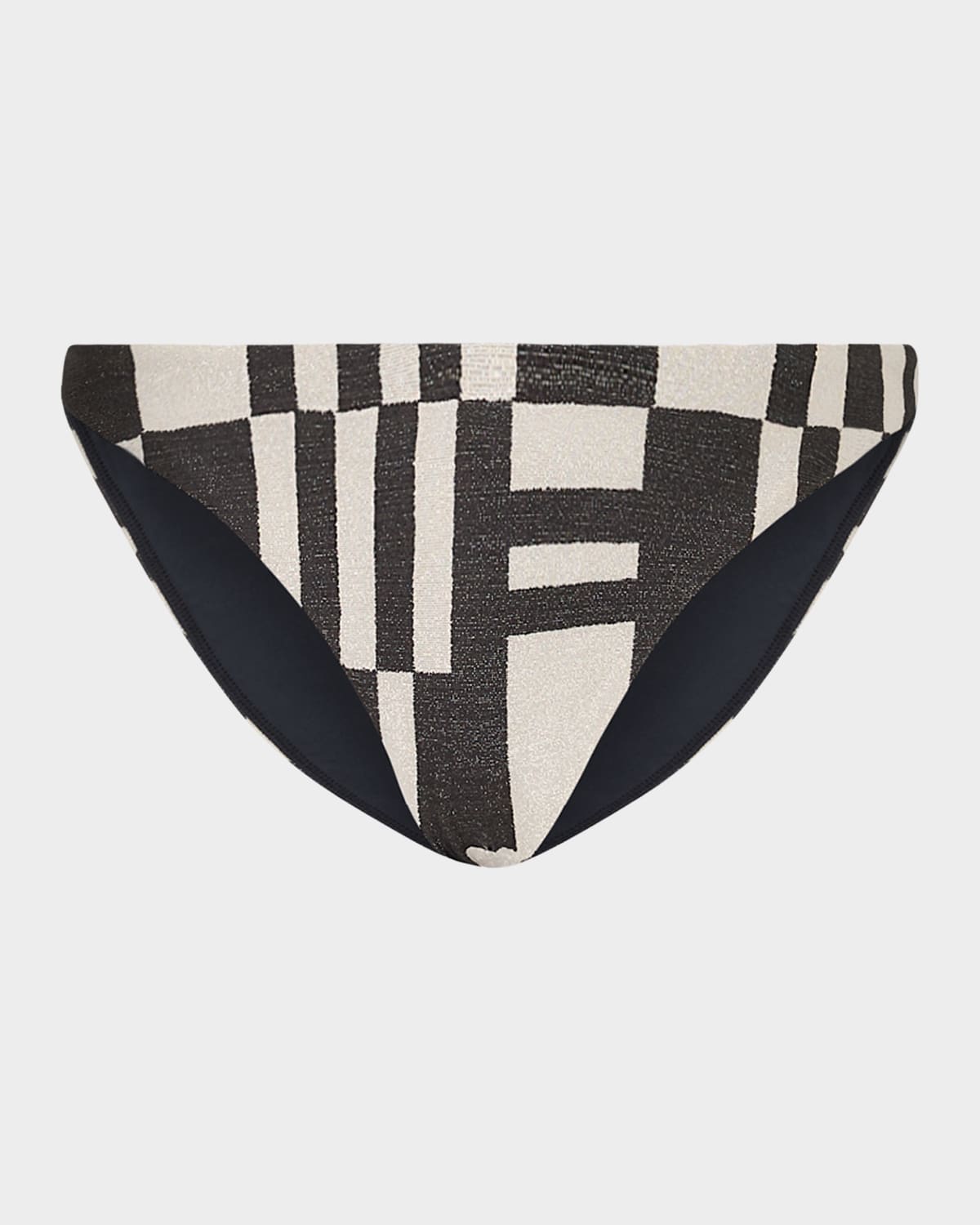 Milly "Margot" bikini bottoms in a metallic geometric pattern Lowrise hipster style Moderate seat coverage Nylon/polyamide/elastane/metallic fibers Lining: Elastane Hand wash Imported Top sold separately
