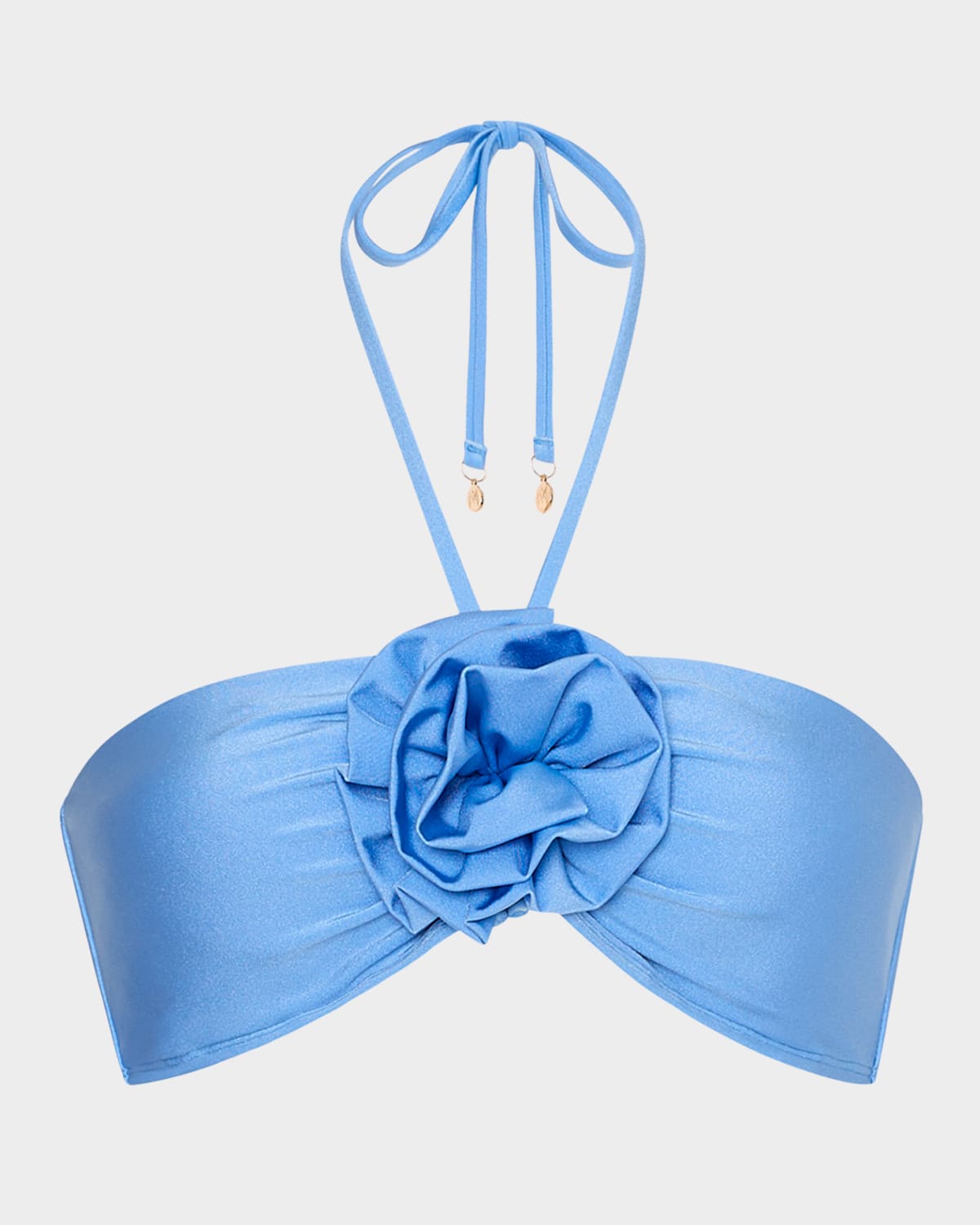 Milly bikini top adorned with a central rose appliqué Halter neckline; selfties behind the neck Midback clasps Nylon/polyamide/elastane Unlined Hand wash Imported Bottoms sold separately
