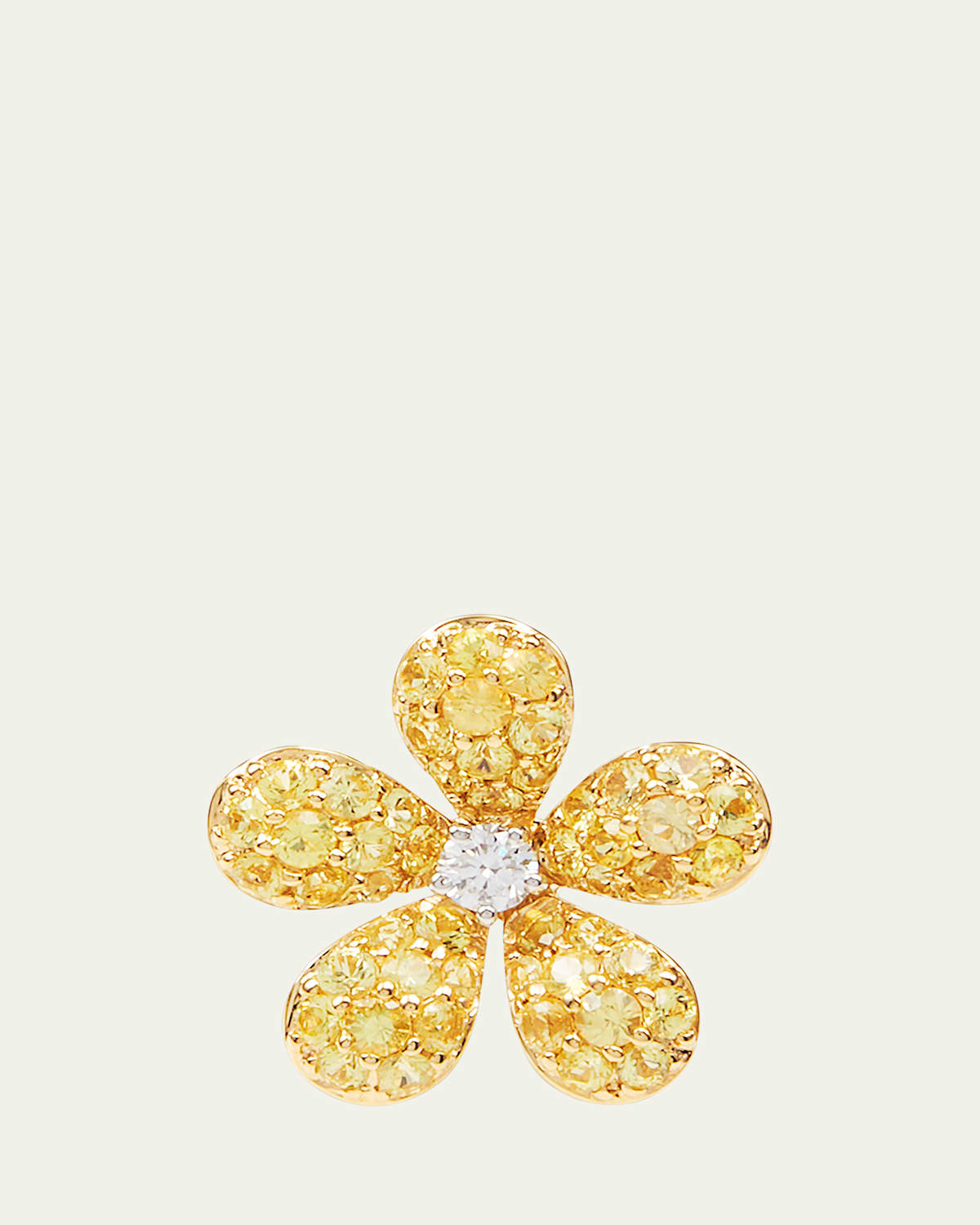 18k Yellow Gold Flower Single Earring With Yellow Sapphire And Diamond