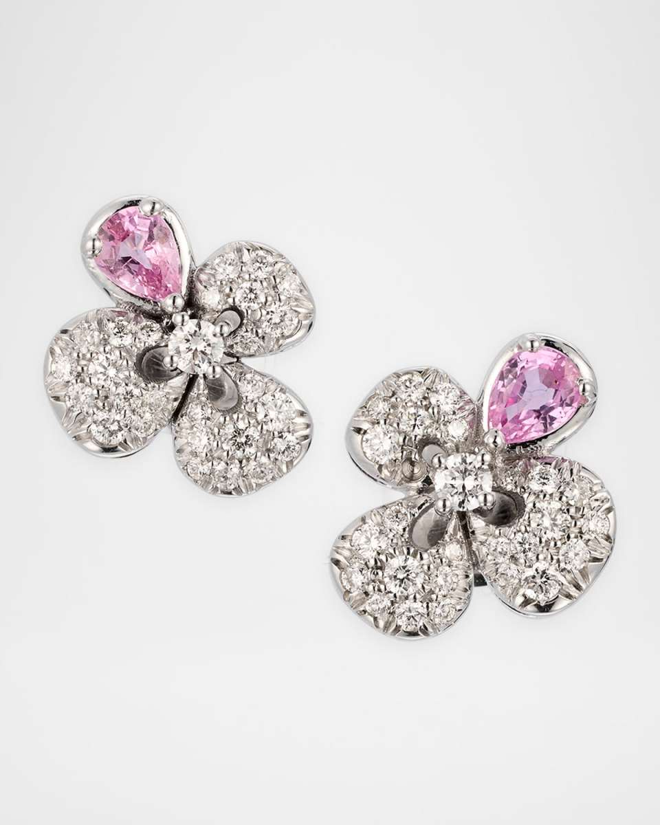 18K White Gold Ischia Diamond and Pink Sapphire Stud Earrings
