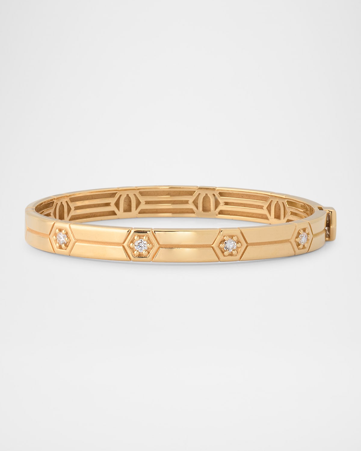 Miseno bracelet from the Baia collection features hexagonal stations with GH diamonds Approx. 7" length Polished 18karat yellow gold 0.36 total carat weight Pushlock closure Made in Italy
