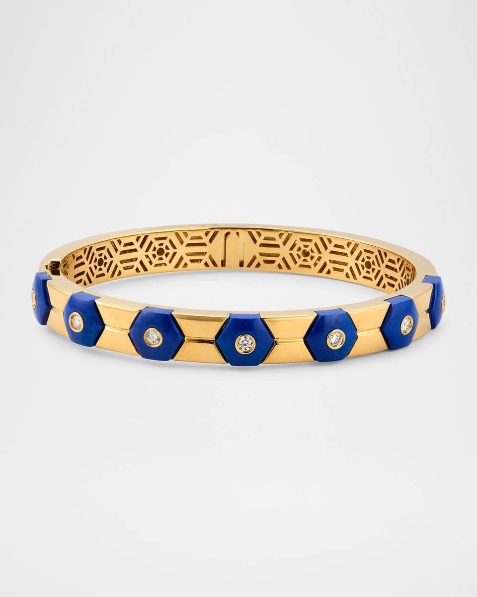 Miseno bracelet from the Baia collection features hexagonalshaped lapis with GH diamond bezels Approx. 7" length Polished 18karat yellow gold 0.63 total diamond carat weight Pushlock closure Made in Italy