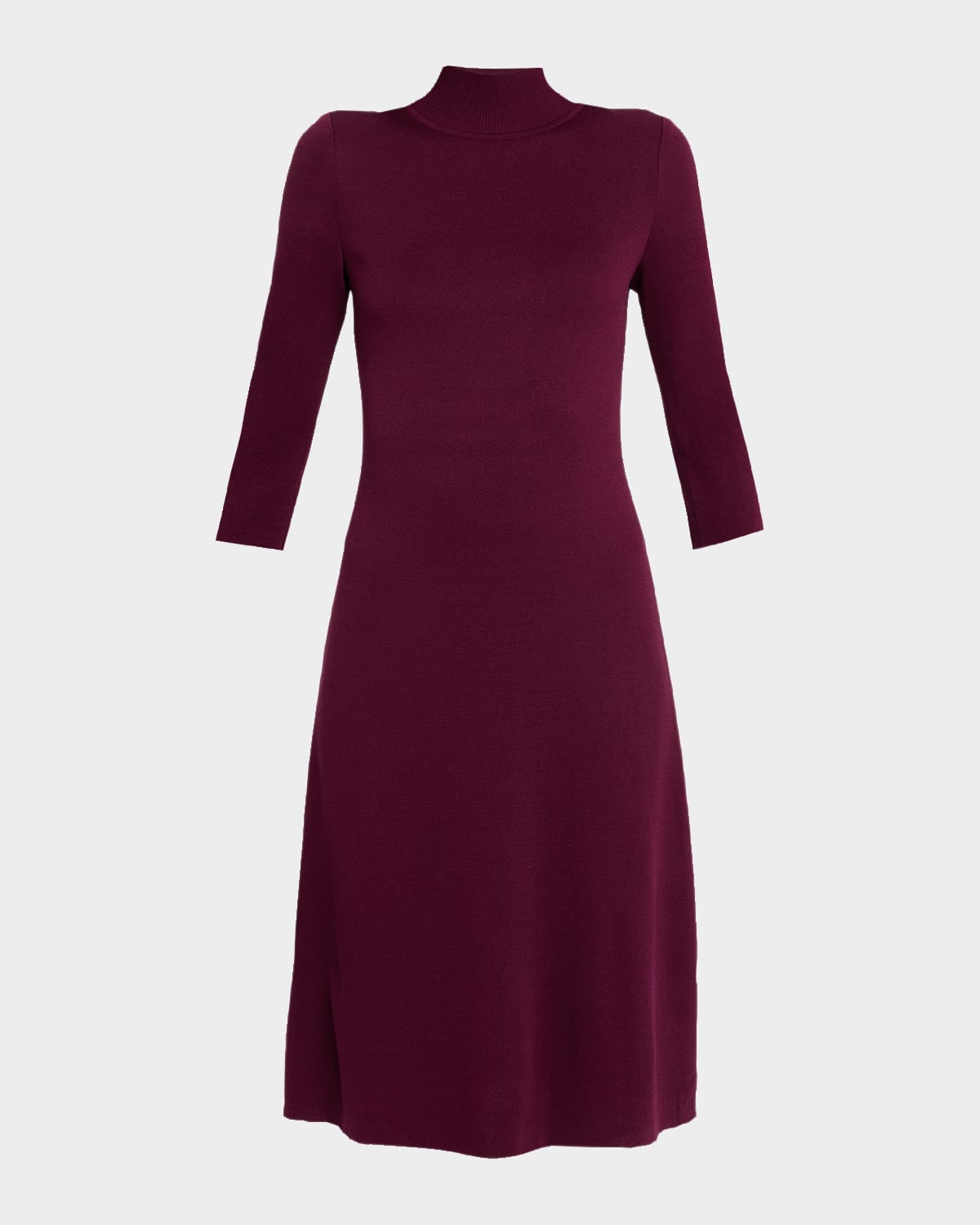 This Misook dress is crafted in a fine knit that skims down the body in a comfortable drape Mock neckline 3/4 sleeves Hem falls below the knee Aline silhouette Slipover style Polyester/viscose Unlined Machine wash cold Imported